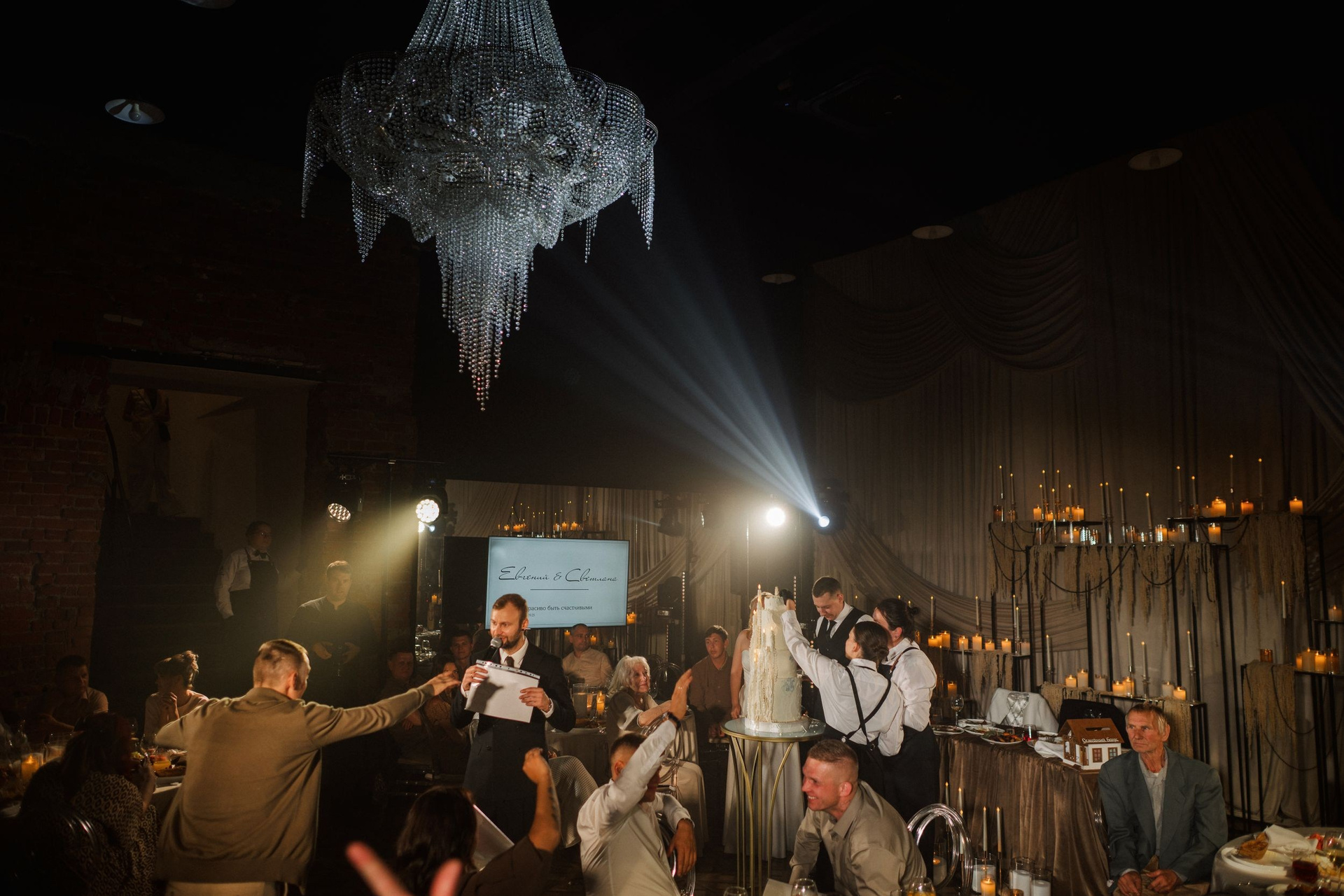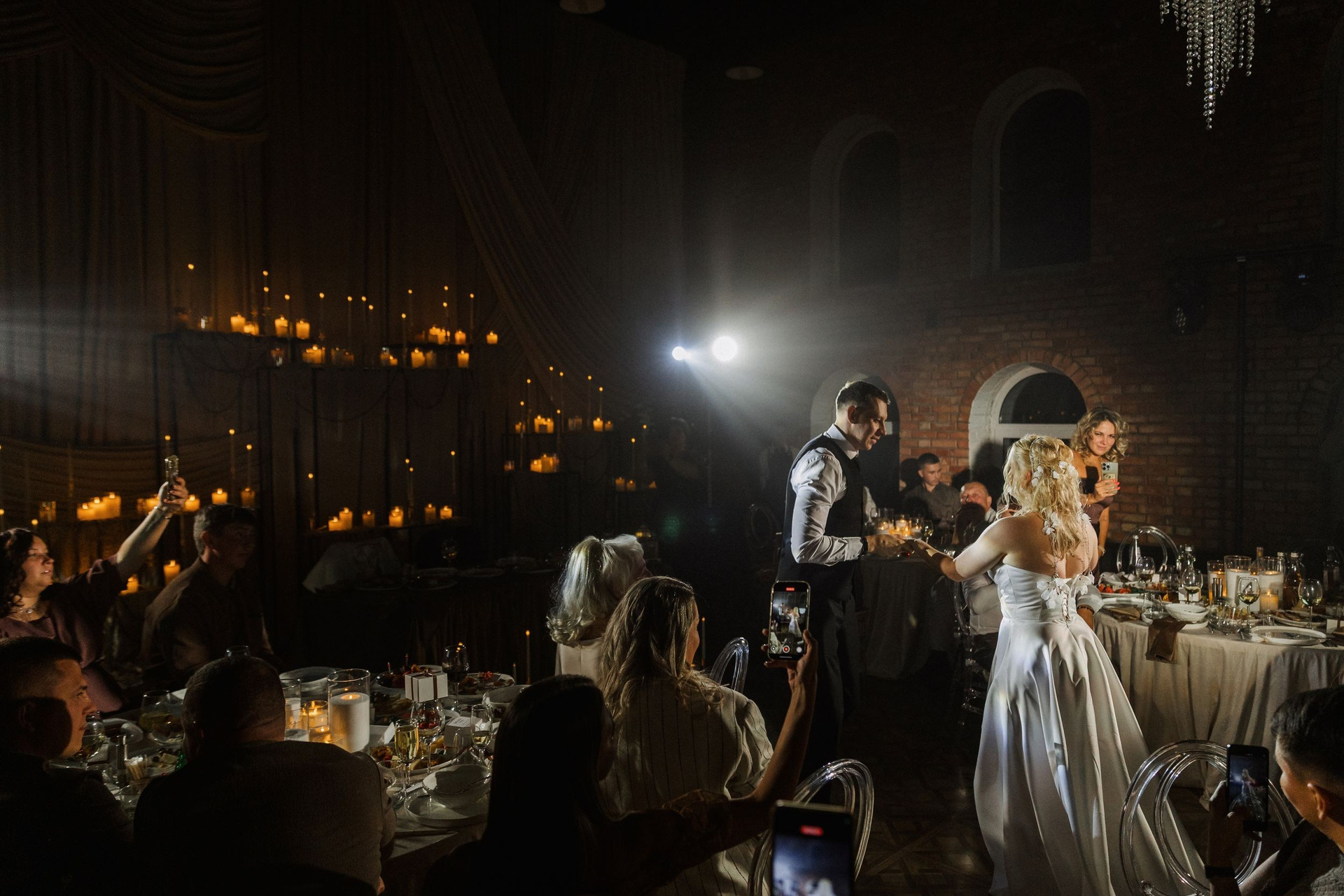 The Hide — одна из самых стильных площадок для свадеб в формате лофт. Высокие потолки, кирпичные стены, панорамные окна, невероятная люстра — идеальный холст для светового оформления. Мы любим The Hide. Наша задача — раскрыть потенциал площадки через свет, создавая незабываемую атмосферу.